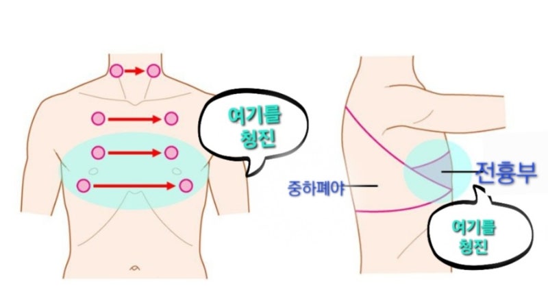 .각 질병에 대해 청진기를 맞추는 위치는 다릅니다.